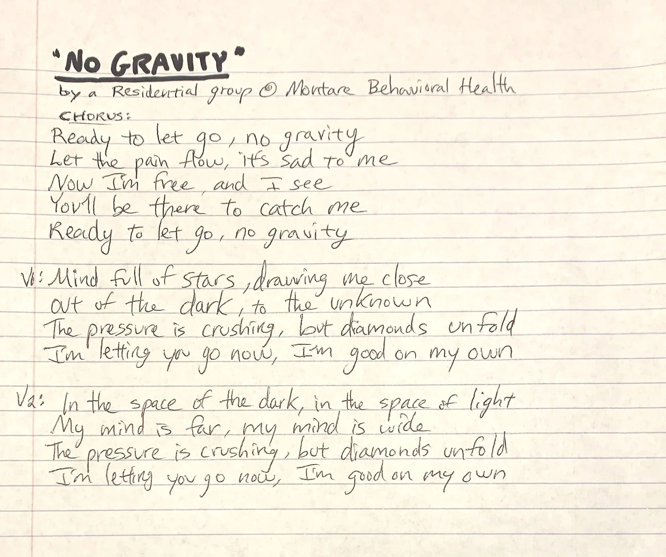 "This was so meaningful for me and it was inspiring to see everyone in our group join in" 〰️ "I surprised myself that I wasn't afraid to speak my mind and give creative ideas" 〰️ "This was so fun and it brought me closer to my peers in our group." 〰️ "It was cool to use my feelings and emotions - that I usually try not to think about - as the starting point for song lyrics." 〰️ "I appreciated getting to use my imagination and creativity in my treatment." 〰️ "This works so well as part of our holistic healing journey" 〰️